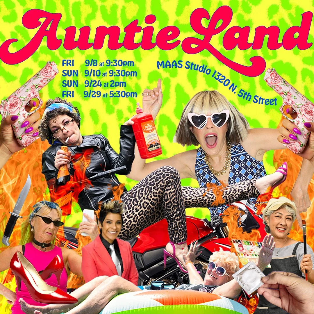 Comediennes Rose Luardo, Marisol Soledad, and Rebekah Rickards invite you on a joyous, jiggly journey through AuntieLand. Petting her caiman while sipping scotch in the Tiffany lamp light of a smoke-filled room. Shaving her legs while applying her lipstick while dishing life advice in stilettos on her red motorcycle. Three cheers for the ladies who pour you your first beer, get stoned with you, overshare about their sex lives, talk you through your parents’ divorce, sleep in 'til noon, and cheer on your burlesque performance. Come for the family secrets, stay for the wisdom, condoms, and wine. Auntie is your biggest fan.